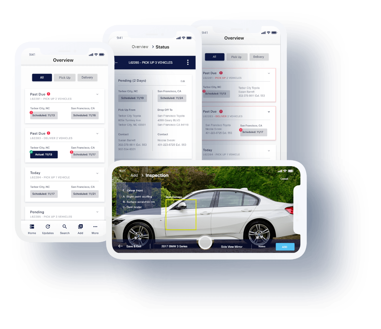 Pictured right, we built/extended a mobile Vehicle Shipping/Tracking system for capture of before and after information.