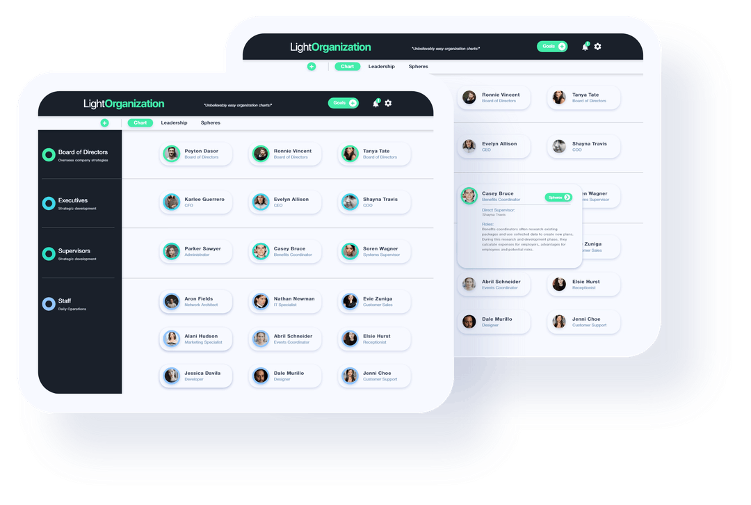 In this example, we designed and built a web application for managing and organizing company organizational charts